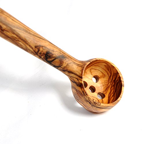 Olive Wood 7.5" Food Strainer - Handcrafted Spoon Server, Unique French Style Scoop for Olives