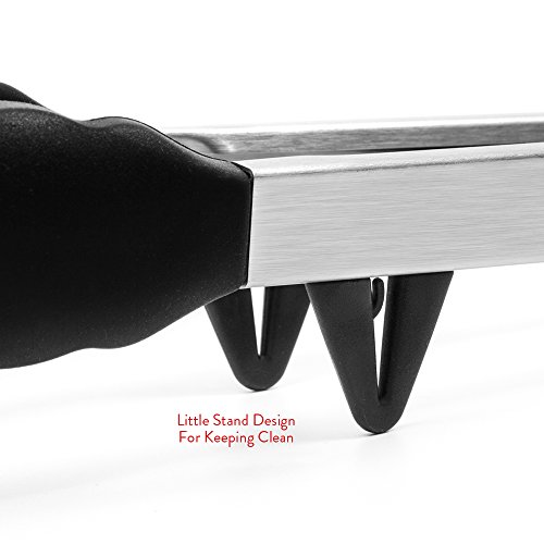 SUPERIOR QUALITY MATERIALS TO LAST LONG: 2-Piece food tongs(9” and 12”)are made with extra thick 1mm brushed stainless steel and provide safe control without the risk of breaking, bending or rusting