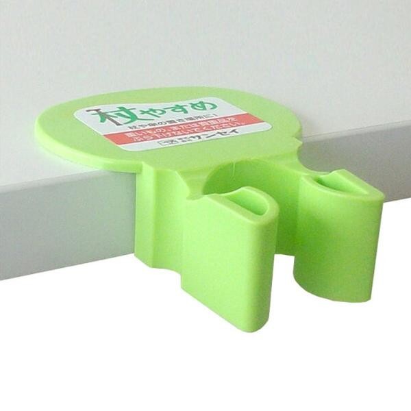 杖やすめがあれば、杖が倒れる心配がありません。受付カウンターなどの天板に粘着シールで貼付けできます。