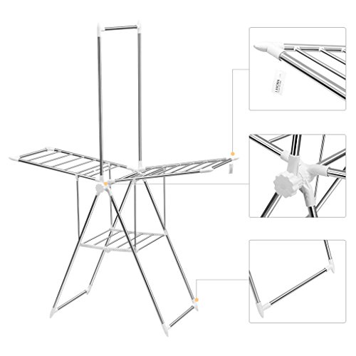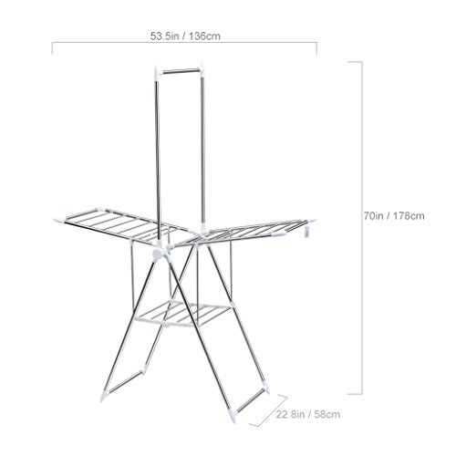- WINGS WITH ADJUSTABLE HEIGHT: with 2 supportive arms of each wing, you can easily adjust different angles to lay flat or hang your clothes with different lengths such as sweaters, blankets, trousers, jackets or towels and more