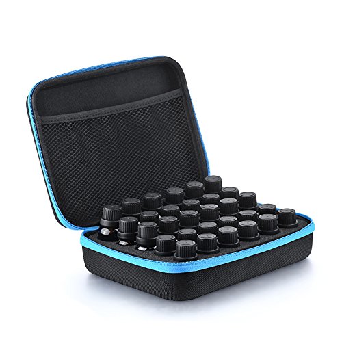 Essential Oils Carrying Case Holds, EAGKORD 30 Bottles 5ml, 10ml, 15ml Bottles Lightweight Oil Storage Perfect for DoTerra and Young Living Oils with Foam Insert (Black + Blue)