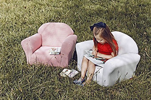 The Roundy chair was designed to enhance the beauty of any room. It is also comfortable and durable; it has a strong wood frame, covered with high density foam to maximize comfort. The Chair is handmade just like an adult piece of furniture with wooden legs. The Beautiful Gingham fabric is easy to coordinate with most room décor. Add a Roundy Chair to any room to create a special place for reading, watching TV or just Relaxing. Your kids will love it.Feature