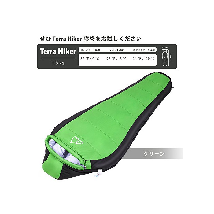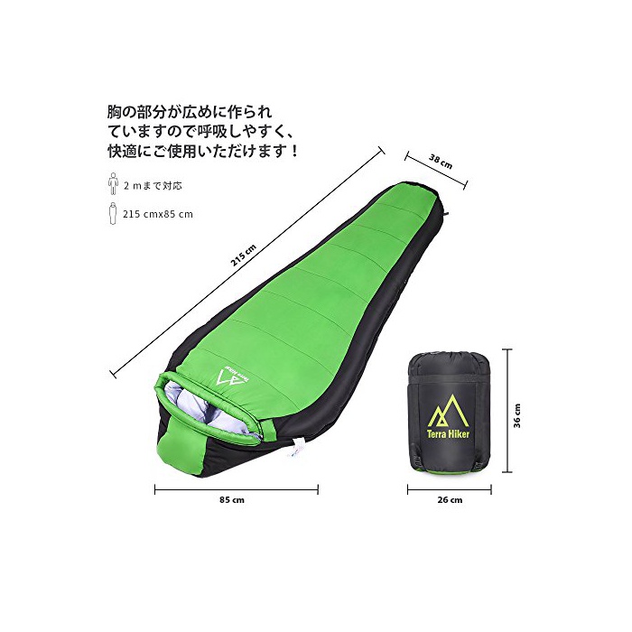원본상품명: Terra Hiker ?袋 冬用 215 x 85 cm 封筒型 最大適?身長2m シュラフ 最低使用?度-10度 スリ?ピングバッグ アウトドア 登山 車中泊 ハイキング キャンプ 防災 ?納袋付