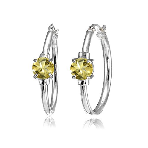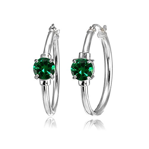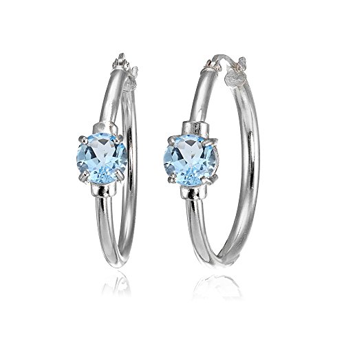 Sterling Silver Genuine, Created, or Simulated Gemstone Solitaire 25mm Hoop Earrings