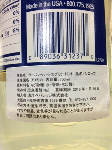 Torani Mojito Mint Syrup, 750 ml Bottle