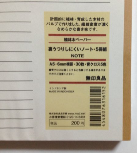 2 X MUJI Notebook A5 6mm Rule 30sheets - Pack of 5books [5colors Binding]