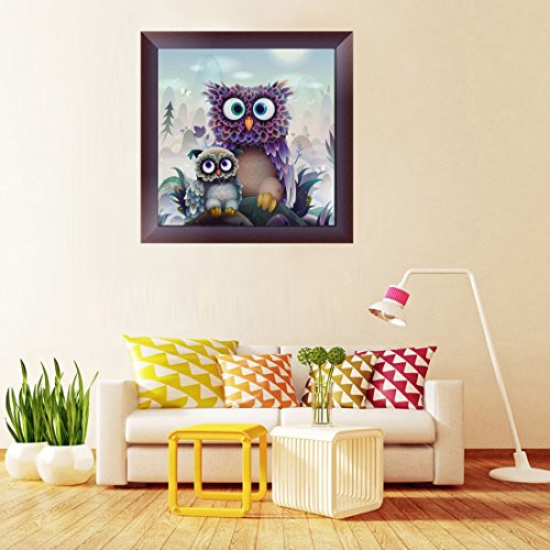 DIY 5D Diamond Painting by Number Kit, Two Owls Crystal Rhinestone Embroidery Cross Stitch Arts Craft Supply Canvas Wall Decor
