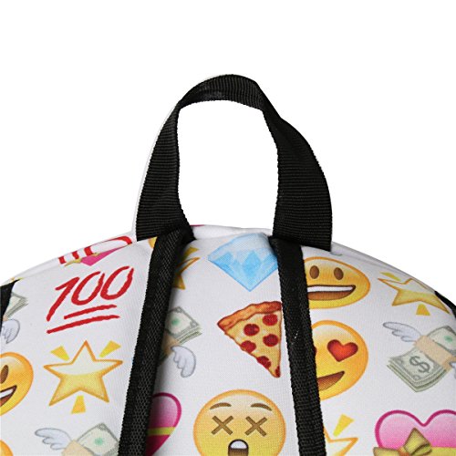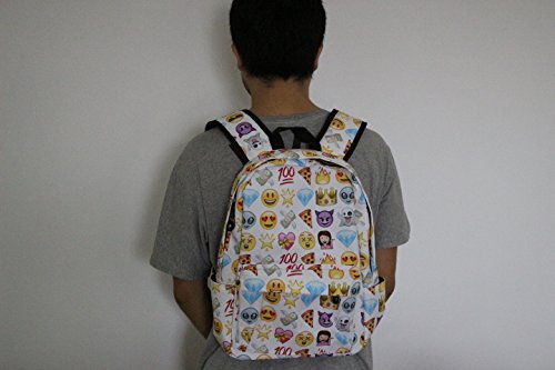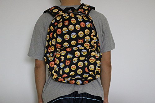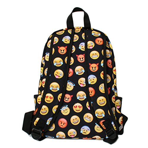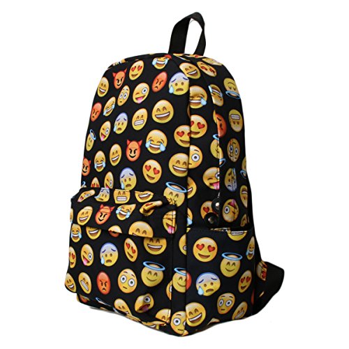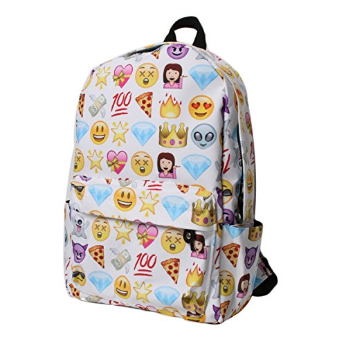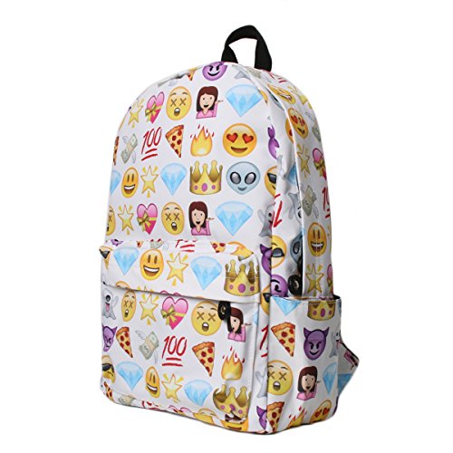 -. Feature : 1.Gender : Unisex, Men, Women, Boys, Girls. / 2.High Quality zipper for the protection,and very good matherial polyester. / 3.New with tags,emoji backpack with side pockets. / 4.15*5.9*15inches ,with adjustable curved padding double shoulder straps. / 5.To carry handle with small pocket on top for sunglasses or other small essentials