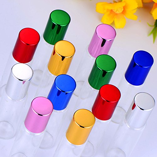 BBTO 12 Pieces Multicolored Roller Bottles Glass Perfume Bottles Refillable Perfume Roller, 10 ml