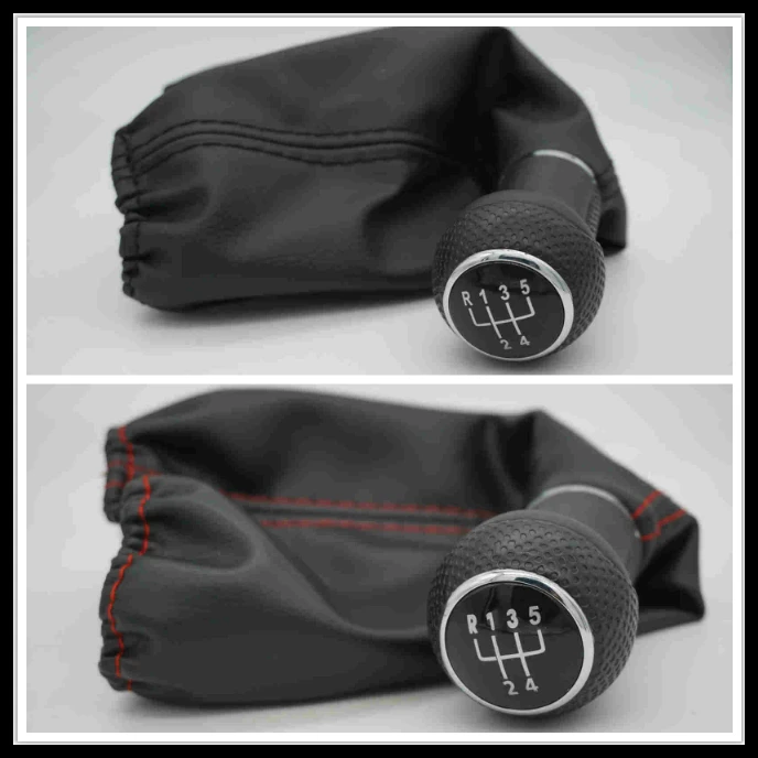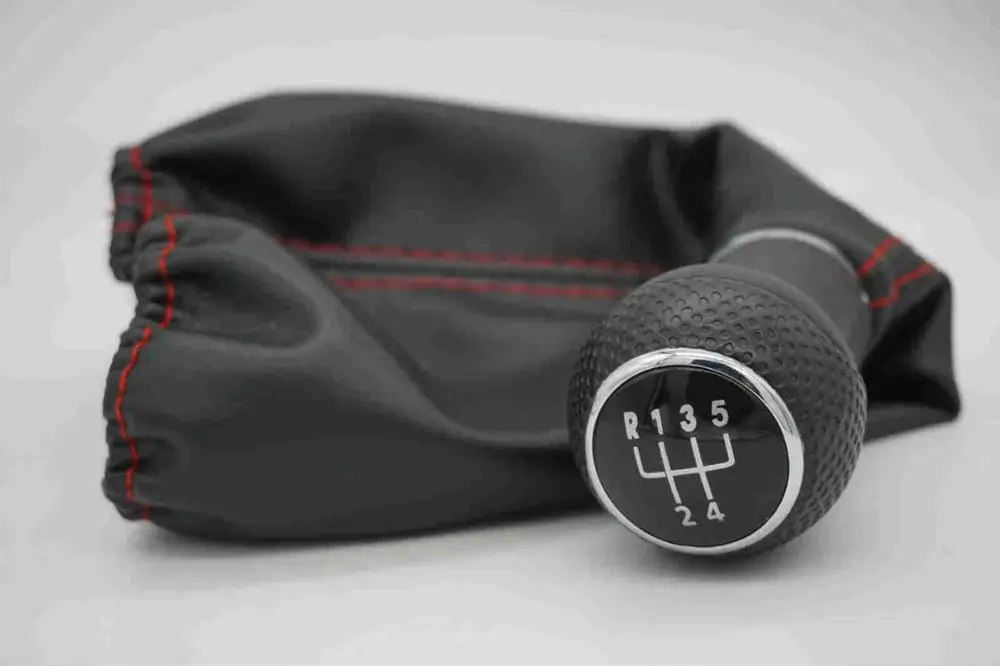 1:5 Speed Gear Shift Knob With Leather Boot With Red Line