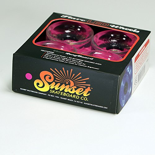 -. Title : 2016 Sunset Skateboards Pink 69mm Longboard LED Light-Up Wheels Set with ABEC-9 Bearings (4-Pack)