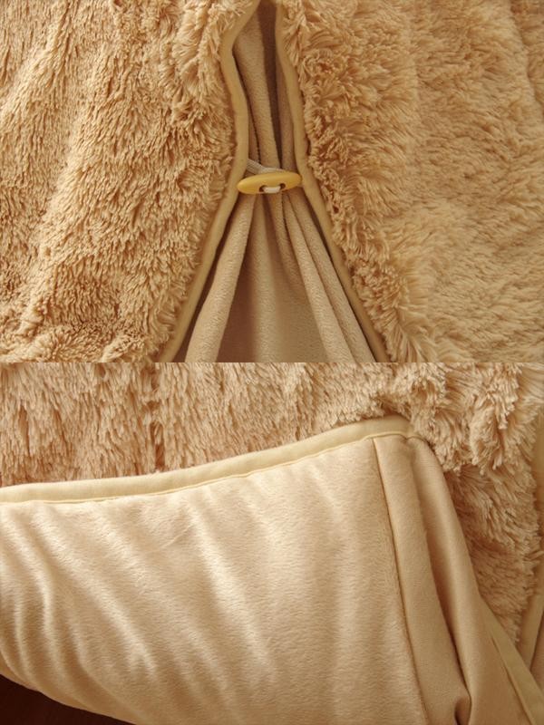 | 素材・材質 | 【表地】ポリエステル100%(長毛フィラメントPH18mm) 【裏地】 天板部:ポリエステル80%、綿20% タレ部:ポリエステル100%(マイクロファイバー) 【中材】ポリエステル100% |