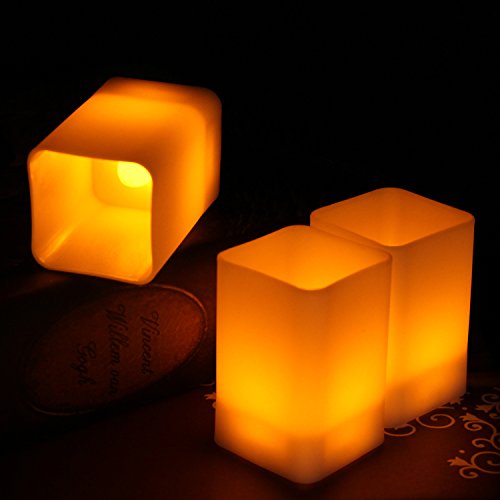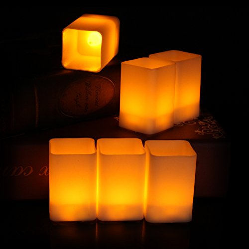 - Set of 12 LED square yellow flickering flameless candles, battery operated.