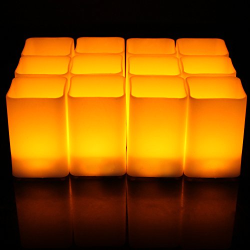 Christmas Decoration Lights, LifeGenius 2.2 Inch Square Amber Yellow Flashing LED Flameless Candles Battery Operated Long Lasting Electric Candle Lights, 12 Pack