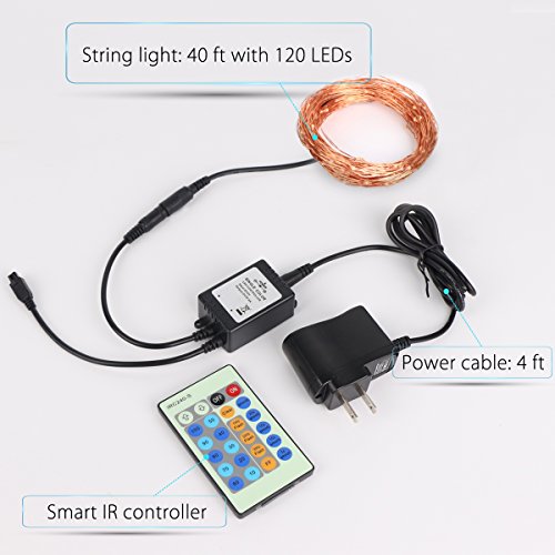 - Safe and Convenient : The low profile power adapter is guaranteed with UL certification. Comes with a 4ft adapter cord and 36 feet of lighting wire with 120 individual LEDs