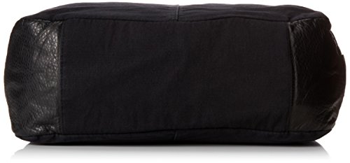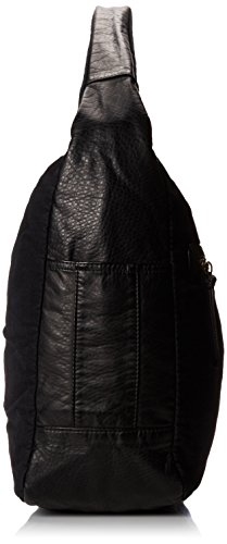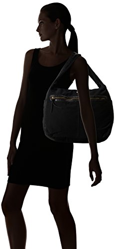 - Feature : Heavy garment washed shoulder bag / Faux leather trim / Side pockets / Front metal zipper pocket / Metal logo plate