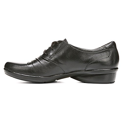 Studio : Naturalizer Publisher : Naturalizer Binding : Shoes Product Description Boast your domineering attitude with the women's Naturalizer Carly oxford. Crafted with premium leather upper that has ruching details at the rounded toe, this casual styled oxford comes with dual elastic gore panels for that perfect fit. Lined with breathable textile lining, it offers excellent breathability. Featuring Naturalizer's N5 Comfort technology, it includes flexible cushioned insole for ultimate underfoot comfort and lightweight synthetic outsole that lets you move freely on any terrain. The non-slippery outsole comes with a low heel that boosts you with its gentle lift. Don the women's Naturalizer Carly oxford for its exceptional heel-to-toe balance and its discrete femininity. 0