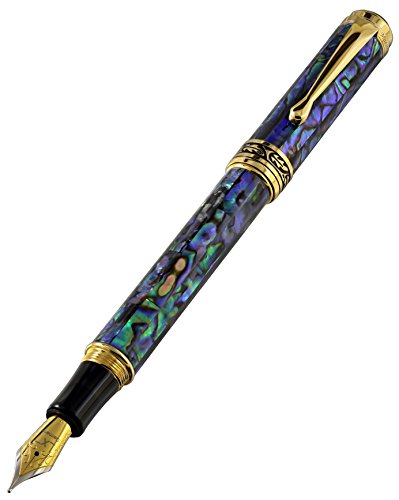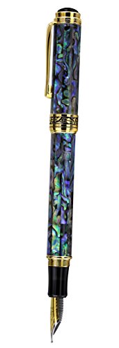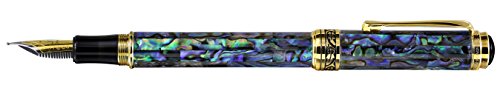 -. Feature : Solid brass barrel and cap with inlay of natural paua sea shell (Abalone). sea shell is a natural material; therefore, some distinctions in the texture of the sea shell (Abalone) material may occur / Distinctions in texture of materials are not defects, but rather natural attributes which add uniqueness to each of these pens. The panels range from green to black, along with red or blue overtones. / Supplied with gift box, (4) ink cartridges, cloth, ink converter, certificate and 3-year warranty card. German-made medium point stainless steel nib. / Screw-on cap. 18-Karat gold plated brass fittings. Limited edition. Each pen is Individually numbered / Diameter: 12 mm, length posted: 170 mm, length Capped: 145 mm; weight: 40 grams/1.4 oz.