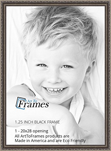 ArtToFrames 20x28 inch Antique Silver with Beads Wood Picture Frame, WOMD6661-20x28