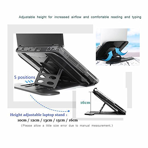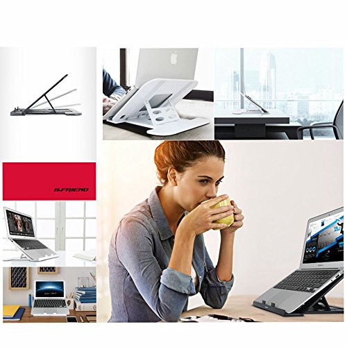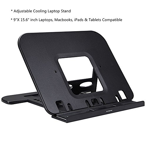1.Height adjustable laptop stand,fits for 9" to 15" Notebook Laptop and iPad and e-readers in either portrait or landscape view.