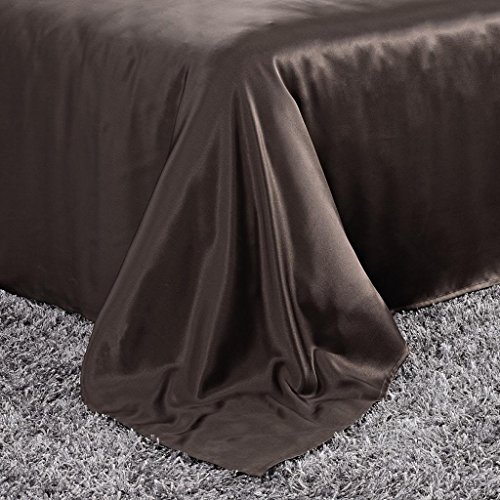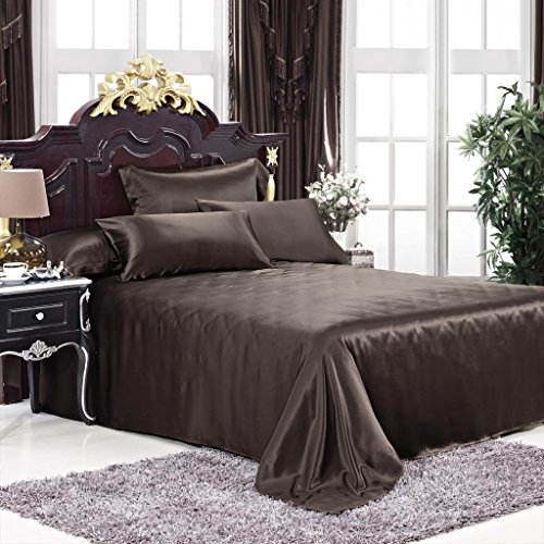 LUXUER - Silk Flat Sheet/ Blanket 1-Piece Machine Washable Handmade 100% Pure Mulberry Silk for All Seasons Queen Size, Chocolate / Brown