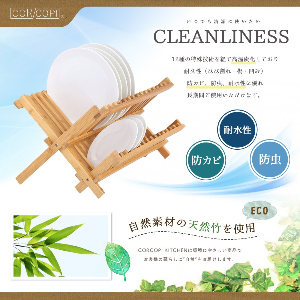 The clean and beautiful form of CORCOPI dish rack blends into any kitchen.
