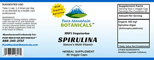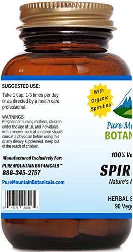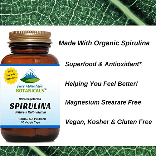 - Feature : Our Organic Spirulina capsules helps You feel your best with support for Energy Levels and Detoxing your body.* / Nature's perfect multivitamin, Spirullina powder is high in protein, magnesium, zinc, Vitamin A, Vitamin K and includes the essential fatty acid gamma linolenic acid (GLA).* / Our Organic Spirulina tablets are VEGETARIAN, KOSHER and GLUTEN FREE. Feel Secure Knowing You're Only Putting the Absolute Best Product in Your Body, Made with NO Harsh Preservatives, Fillers or Flowing Agents - NO Sodium Benzoate, NO Magnesium Stearate, NO GMOs / Pure Spirulina is a Powderful Superfood with the most potent and digestible protein source among all green foods on the planet.* / 100% MANUFACTURE'S MONEY BACK GUARANTEE - Try the Best - Risk Free! These Spirulina Organic capsules and ALL Products from Pure Mountain Botanicals™ are covered by a no-questions asked money back guarantee.