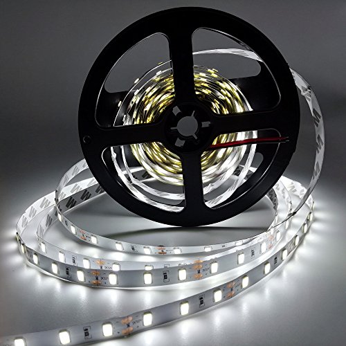 16.4ft(5M) LED High brightness Flexible Light Strip ,300 Units SMD 5630 LEDs,12V DC Non-Waterproof IP20, Light Strips,DIY Christmas Holiday Home Kitchen Car Bar Indoor - No Power Supply (White)