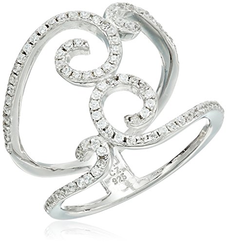 Rhodium Plated Sterling Silver White Cubic Zirconia Ring, Size 7