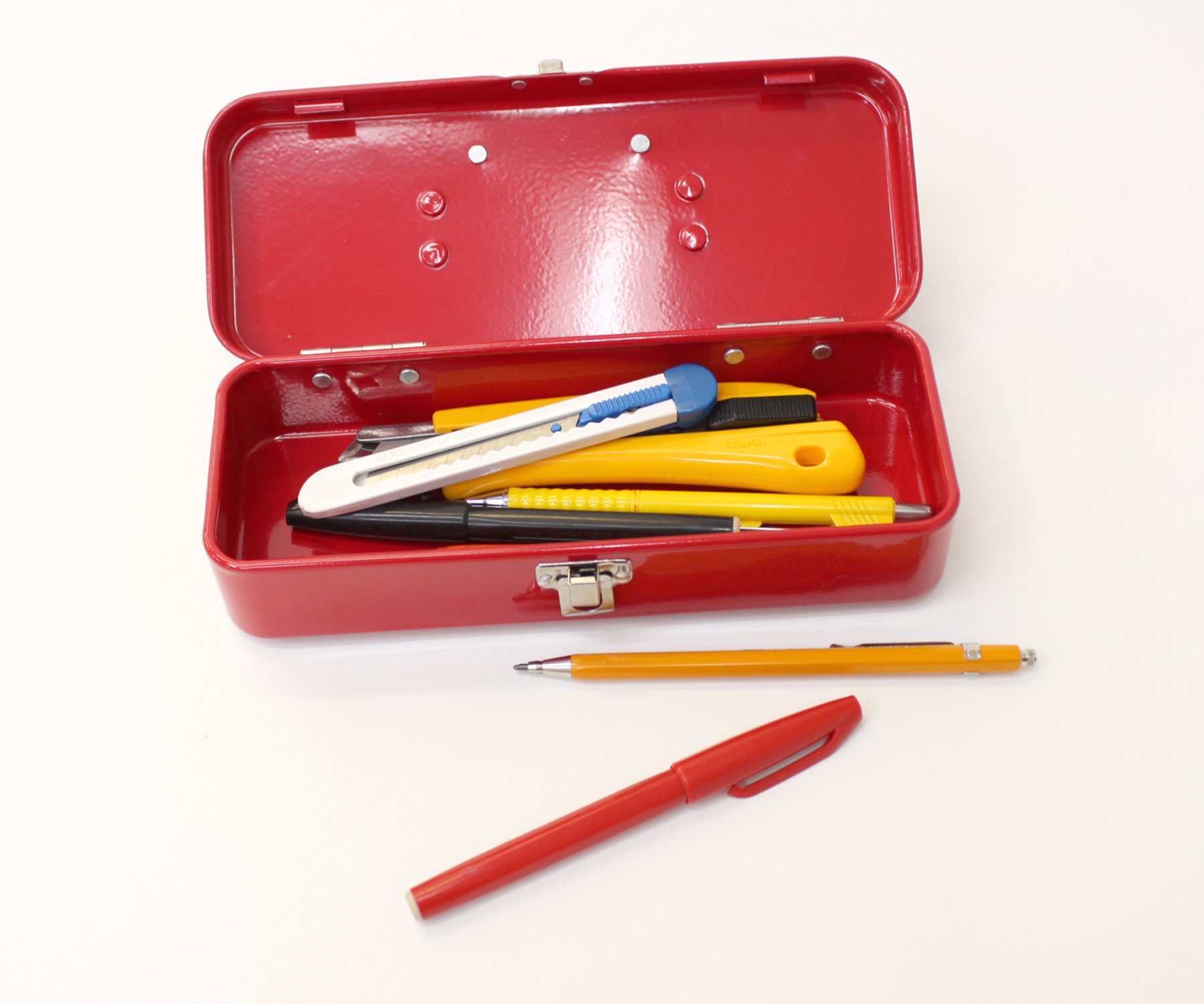 Because it is a mini size tool box, it is ideal for putting fine items such as writing utensils.