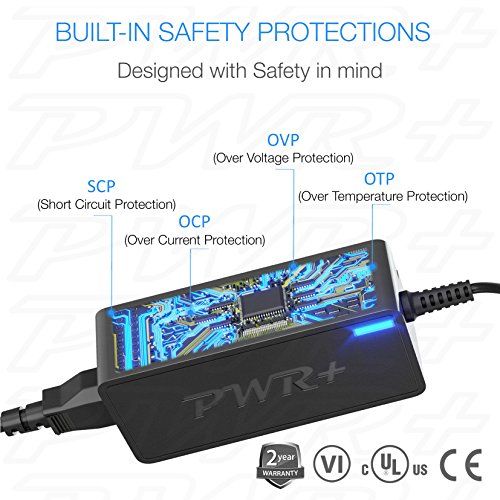PWR+: Powering Millions of Laptops, Tablets and Electronic Gadgets and a go-to brand for premium replacement chargers and accessories since 2007. Pwr+ chargers manufactured with the highest quality materials and include multiple smart features safeguarding against IV - incorrect voltage, SC - short circuit, IO - internal overheating . CE/FCC/RoHS certified