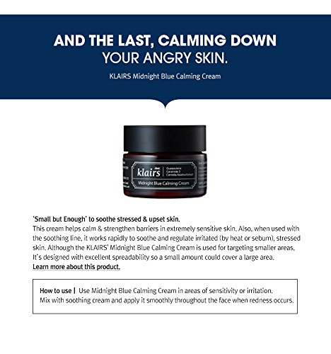 Product Description If your skin is suffering from stress, fatigue and other external cause make sure to use the KLAIRS Angry Skin Calming Package to calm and let your skin feel refreshed. *sorry for the change: since klairs soothing mask is under renewal, we changed the free mask sheets to 15ml blue cream. I am sorry for the change. 0