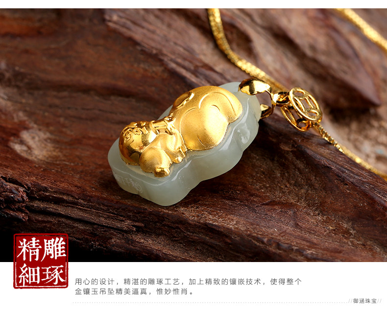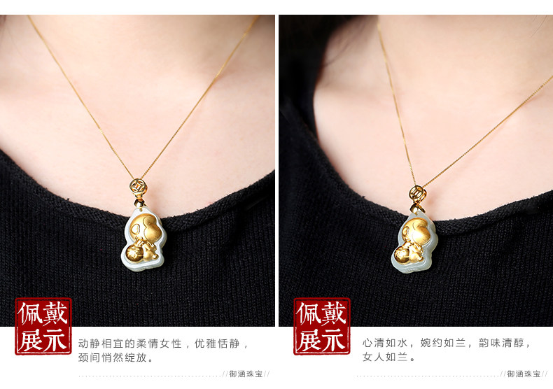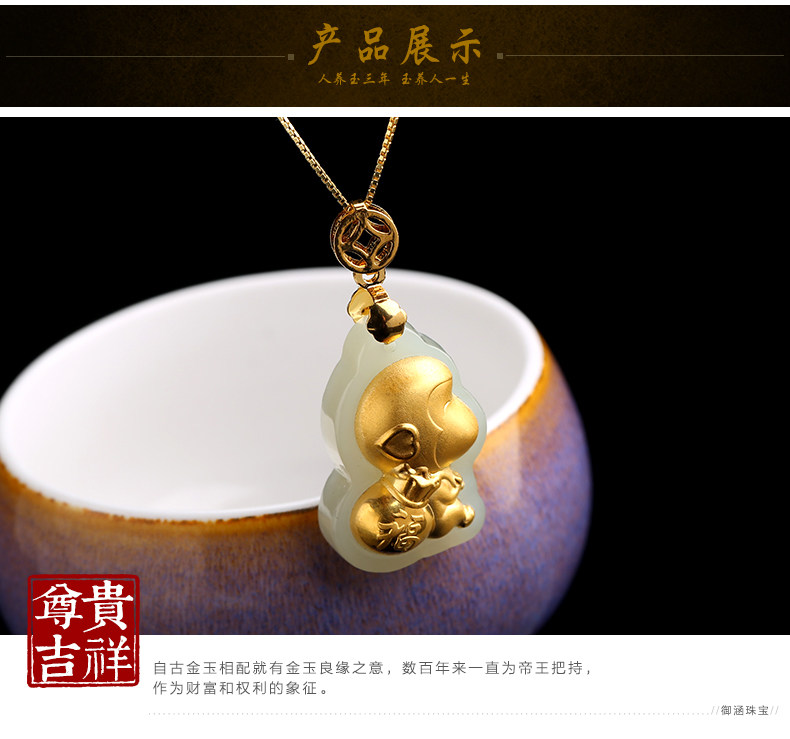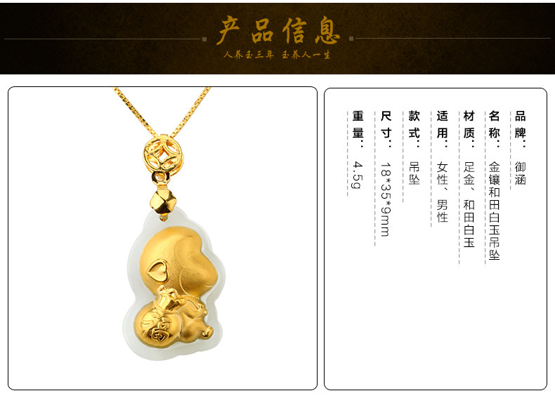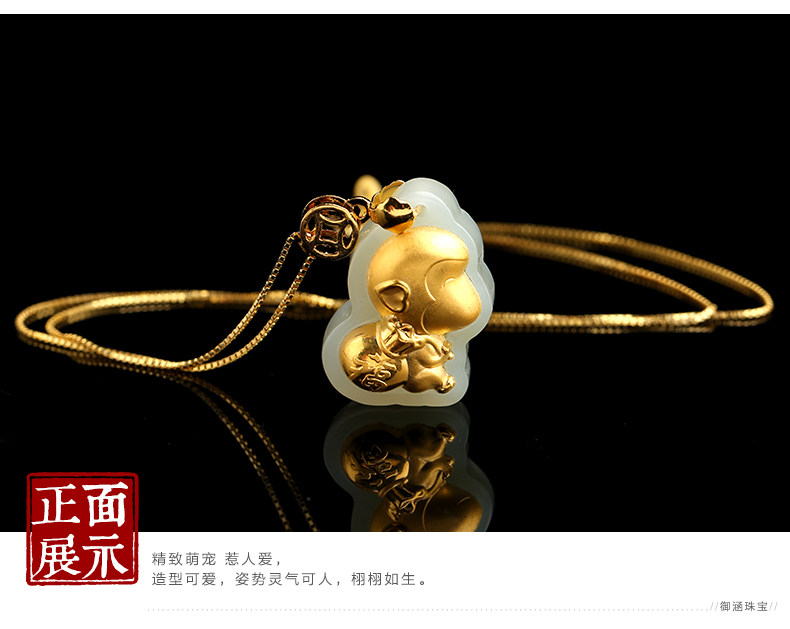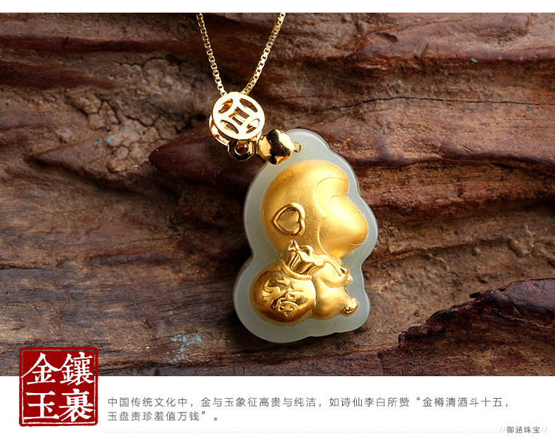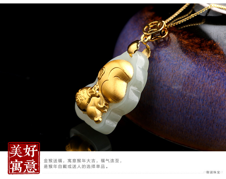 和田白玉金镶玉生肖猴子吊坠 玉佩男女款天然玉石器项链挂件