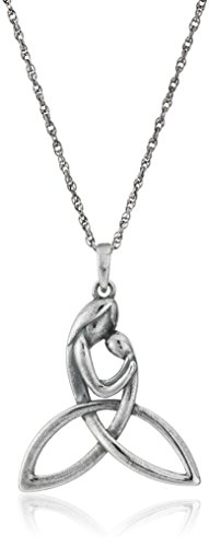 Sterling Silver Oxidized Celtic Knot Mother and Child Pendant Necklace, 18"