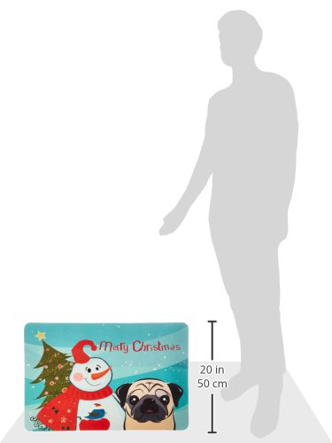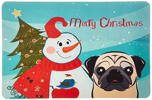 Caroline's Treasures BB1882CMT Snowman with Fawn Pug Kitchen or Bath Mat, 20 by 30", Multicolor