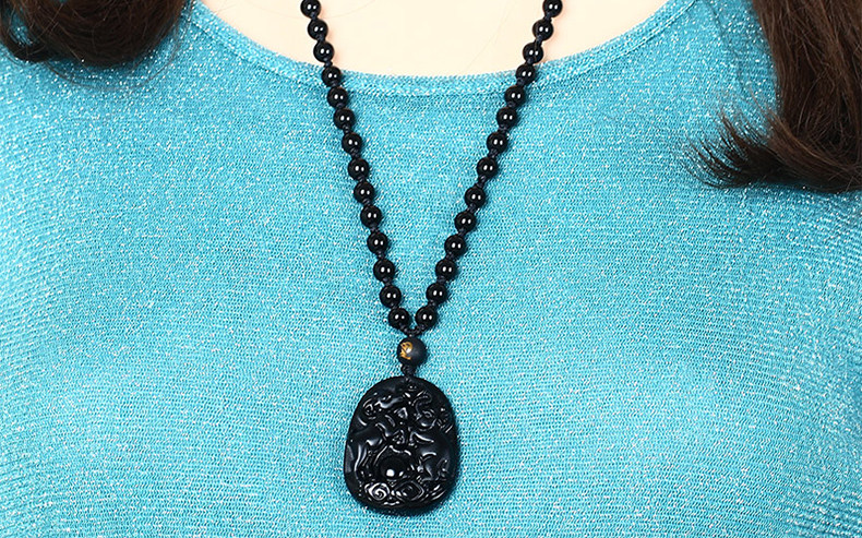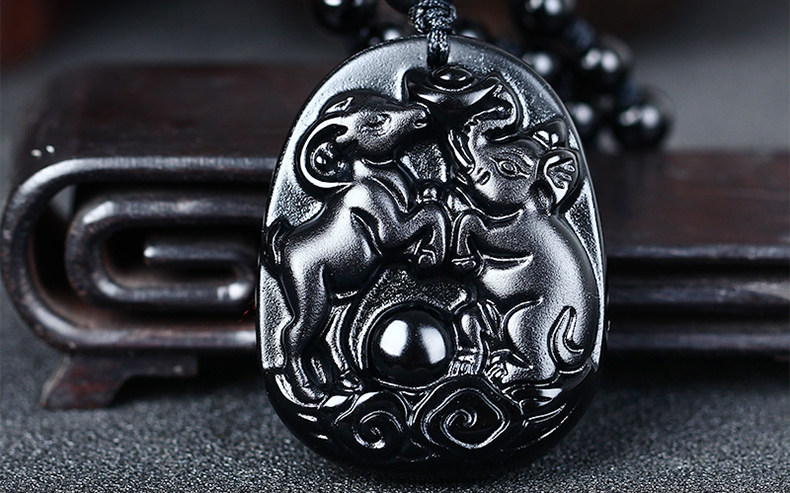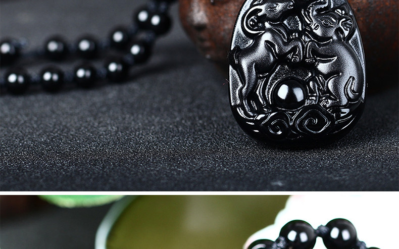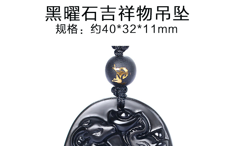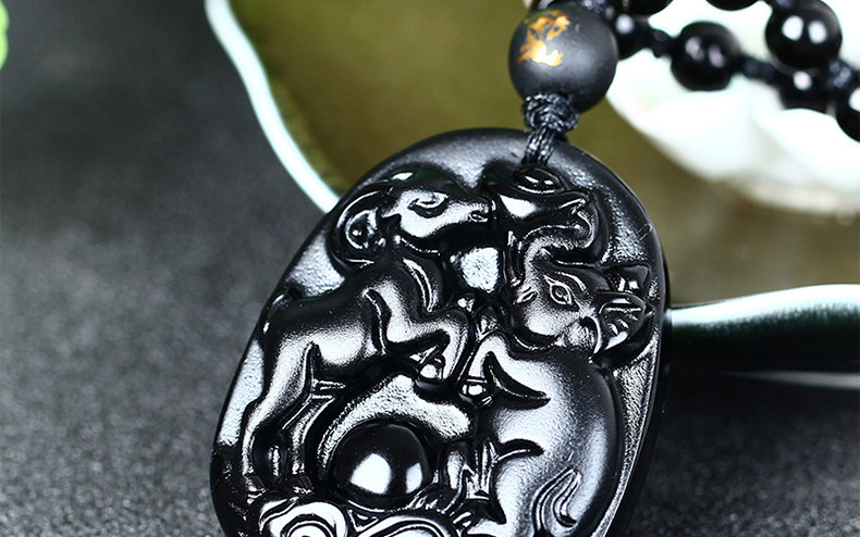 开光生肖属马吉祥物羚象赐福开运吊坠羚象镇宝黑曜石午皇合寅吊坠