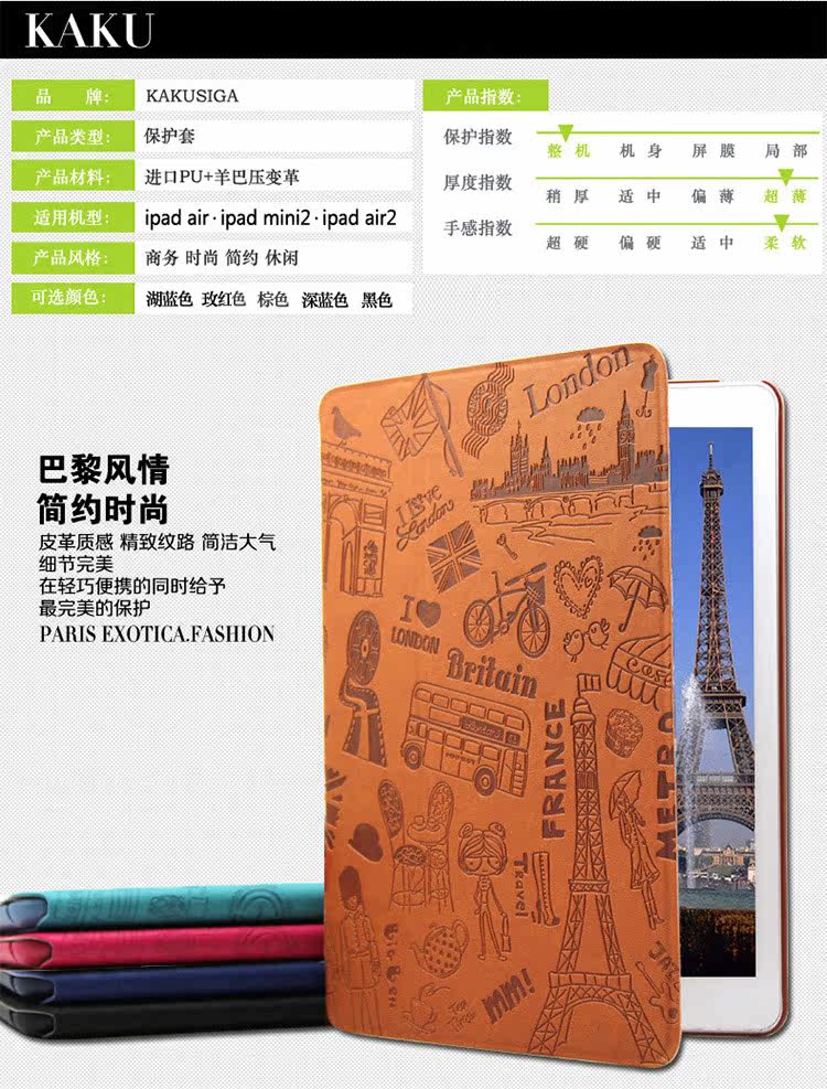 Paris Leather Flip Case For iPad Mini / iPad 2 3 4 / iPad Air /iPad Air 2   16958