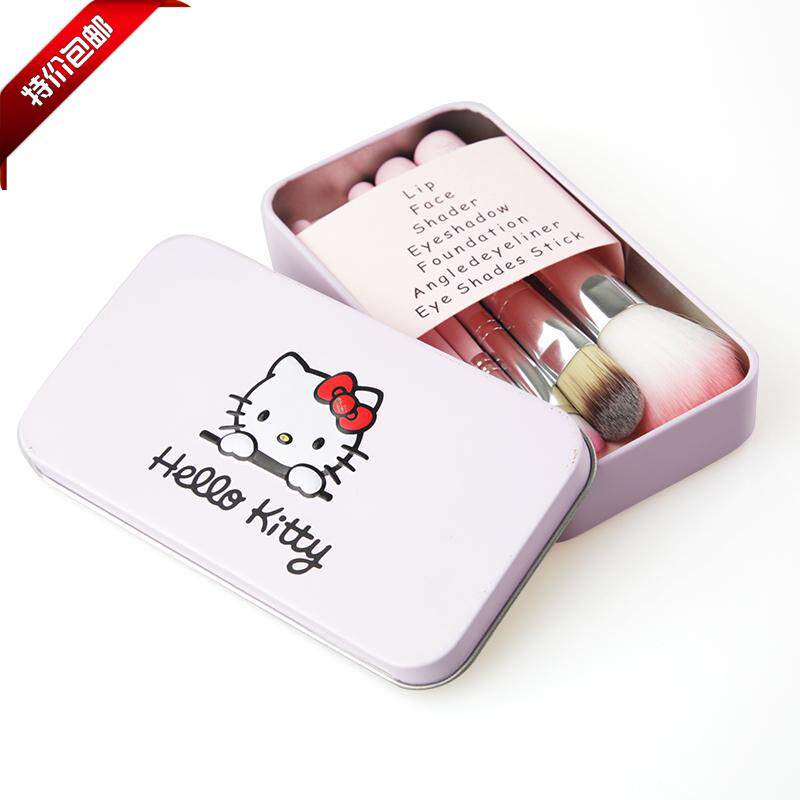 hello kitty化妆刷7件套装腮红刷铁盒彩妆工具刷子粉刷唇刷 包邮