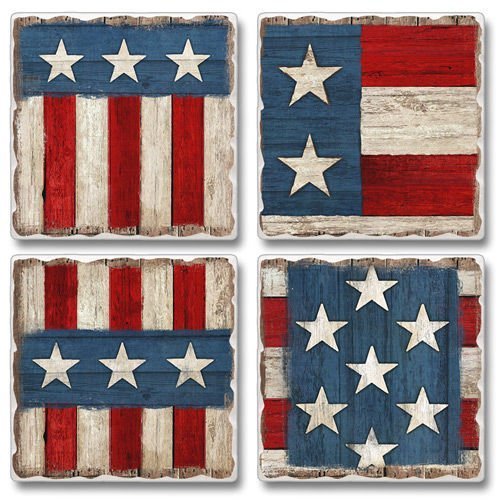 - Assorted 4-coaster set - a different image/design on each one. Made in the U.S.A.