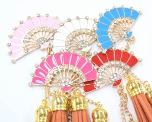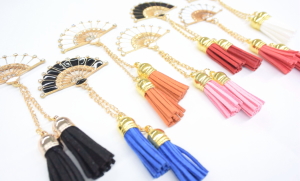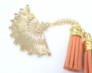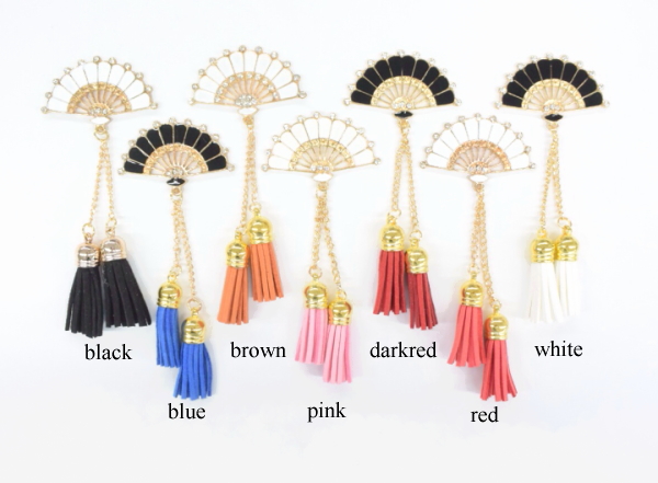 扇パーツに長さ違いのレザータッセルが揺れる。トレンドのタッセルをつけることで、個性的な自分だけのオリジナルが作成できます。