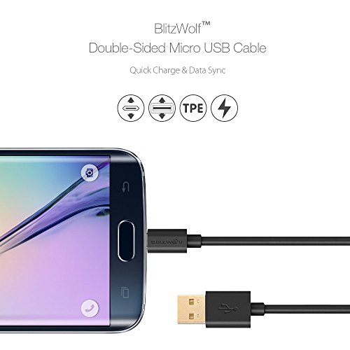 Reversible Micro to Reversible USB Cable, BlitzWolf 3.3ft Android Phone Double Sided Charger and Data Sync Cable for Samsung Galaxy S6 Plus Note 4 5 Edge, HTC M9, Xperia Z3 Z2, Moto X (2-Pack White)