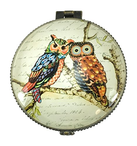 - Glass lid features an image of a Pair of Owls on a branch with french script in the background.