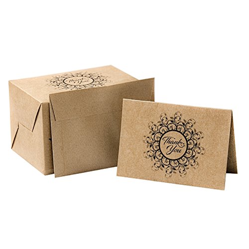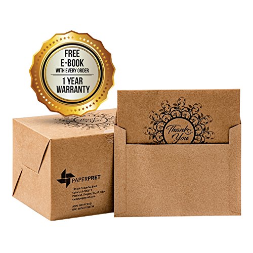 PAPER PRET - Krafty Thank You Cards with Matching Envelopes, 60 Count, Kraft Brown