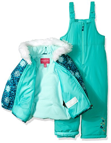 Snowsuit with snow bib and puffer jacket with fur lined hood