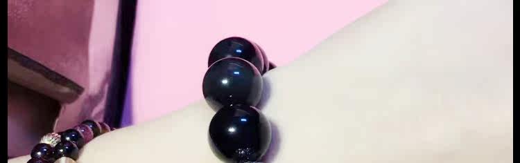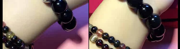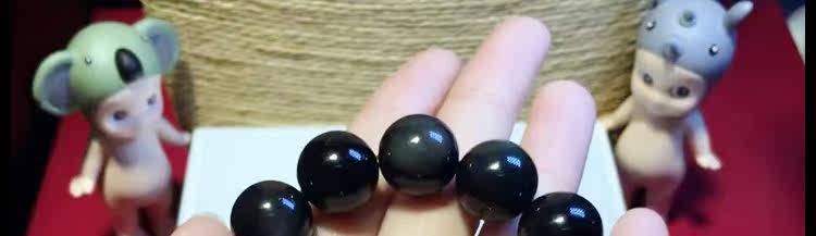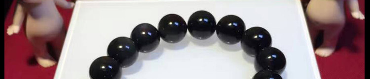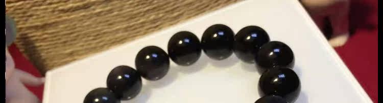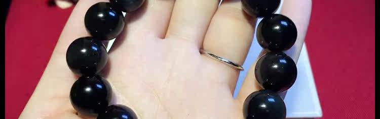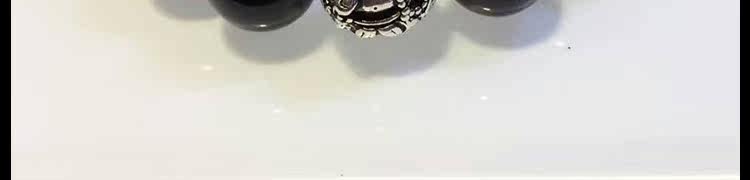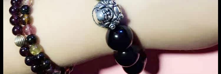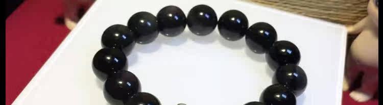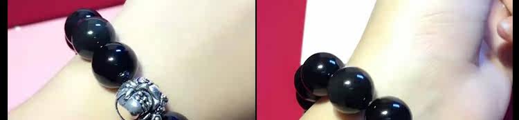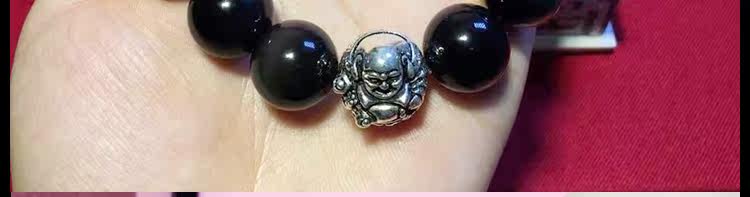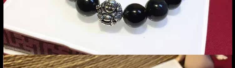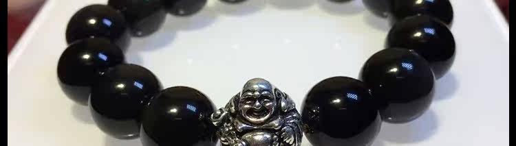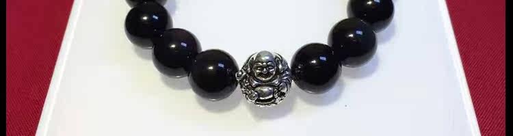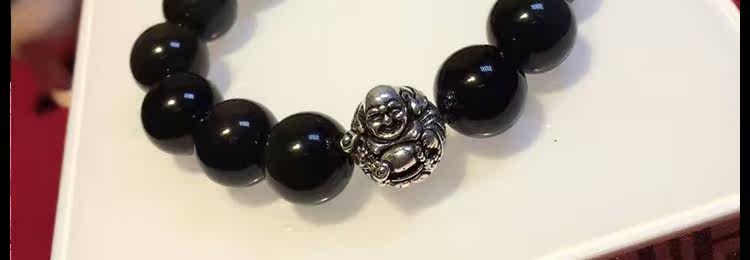 天然黑矅石手链男女情侣款 925银开心佛招财辟邪手串 情人节礼物