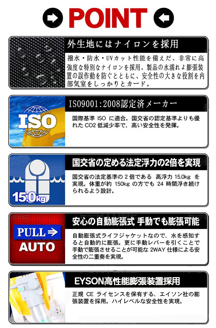 ● For automatic inflatable ordering, we recommend that you purchase spare cylinders at the same time.