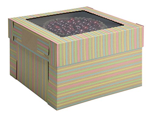 W PACKAGING WPCKB128KS Striped Print Cake Boxes 12" x 12" x 8" Deep, Kraft/Kraft E-Flute (Pack of 25)