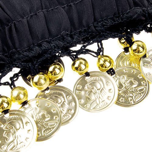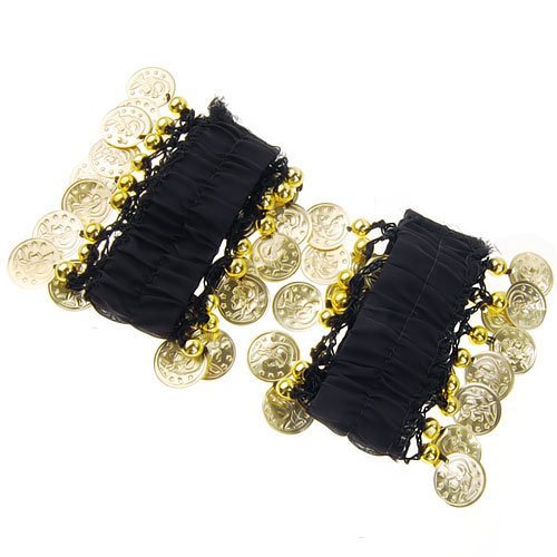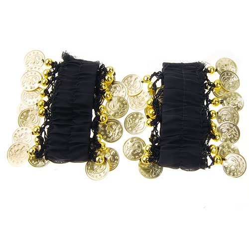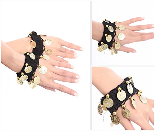 Carykon Belly Dance Wrist Arm Anklet Bracelets Gold Coins Halloween Costume Party Accessories, Set of 4 (2 Pairs) (Black)