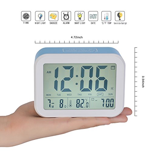 Digital Clock with Smart Backlight, Low Light Sensor technology, the Soft light is very comfortable when you are sleep at night.