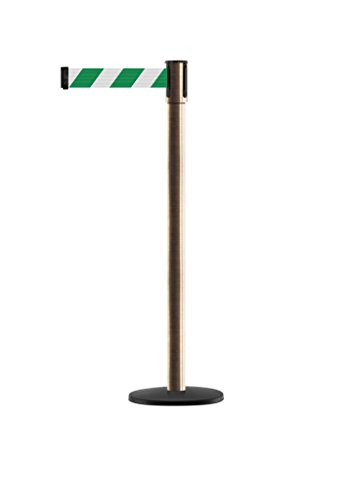 Tensabarrier - 890B-33-2S-2S-MAX-NO-D2X-C - satin brass post, 2" wide, 13' length Chevron Green & White belt